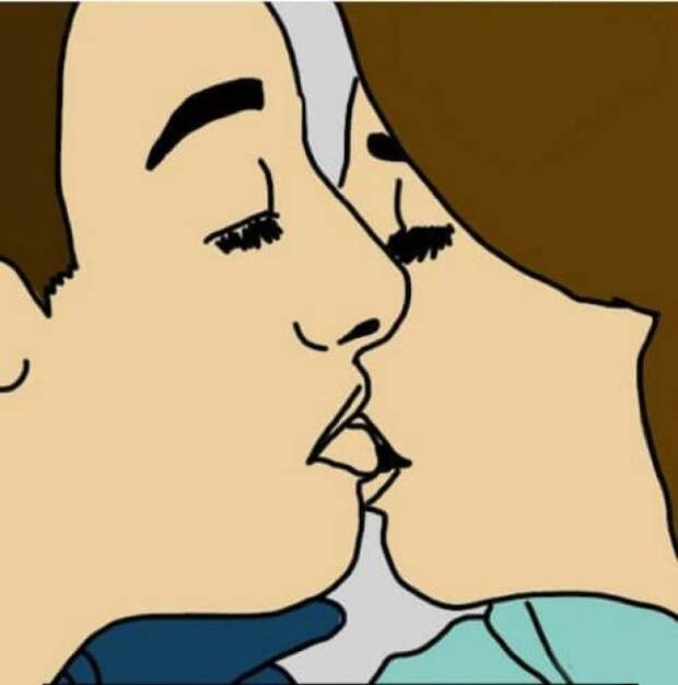 Этот спонтанный вид поцелуя, когда лица расположены «валетом», означает, что в ваших отношениях есть место удивлению и сюрпризам.